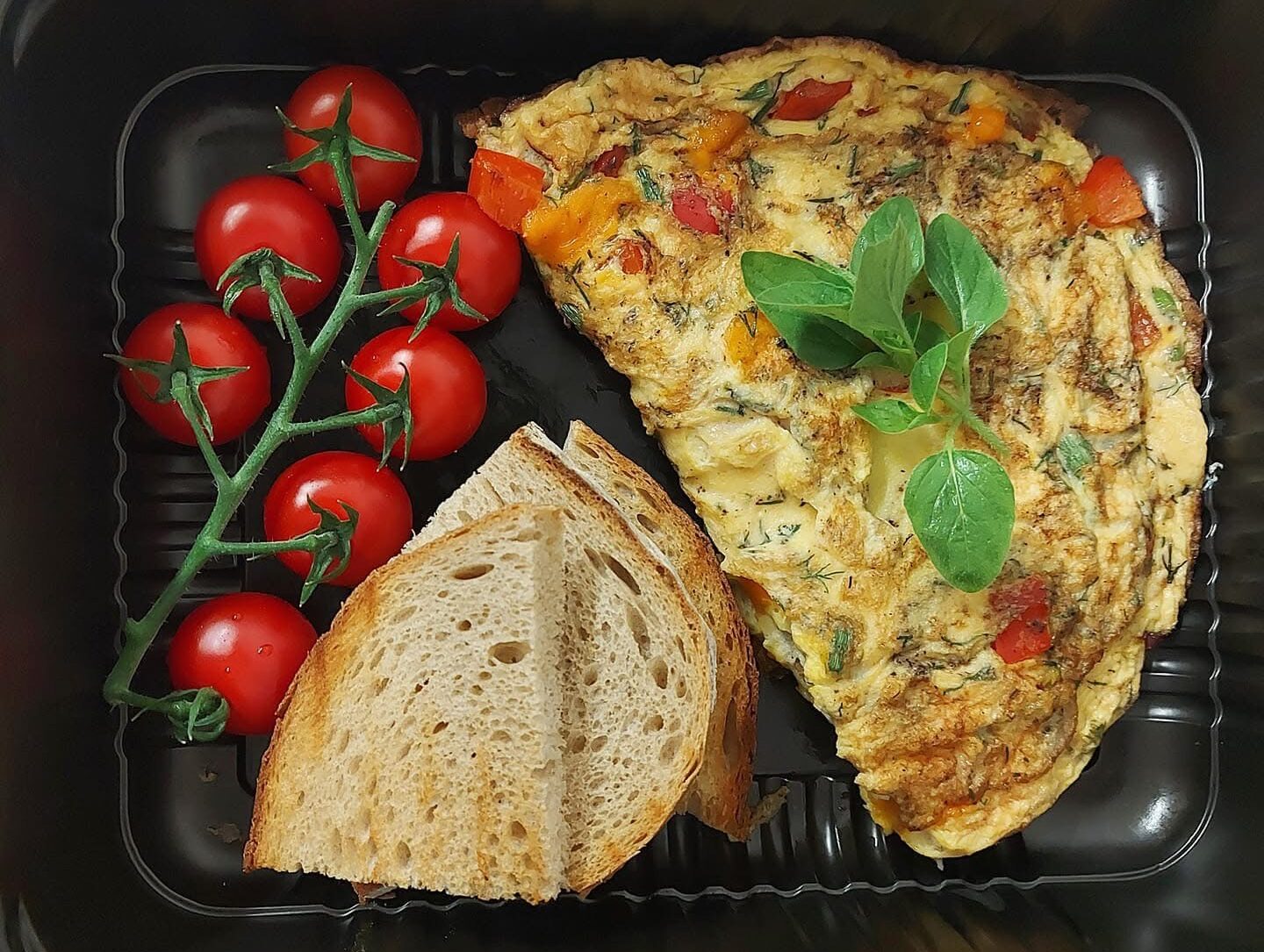 Omlet warzywny z pieczywem razowym